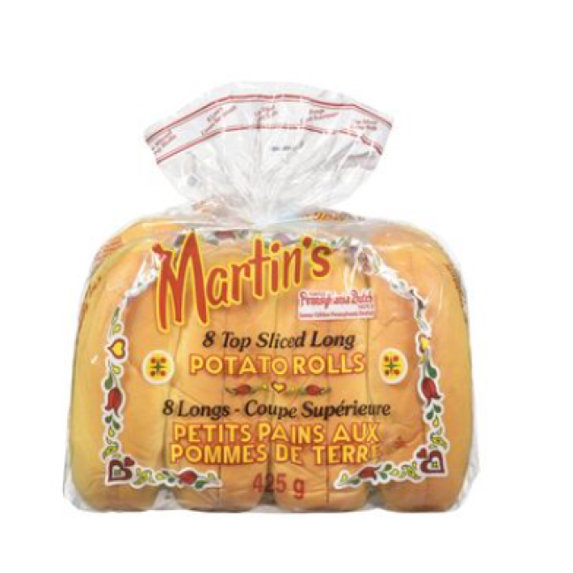 Frozen 8po top sliced long potato rolls