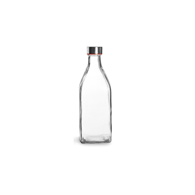 Square clear glass bottle 1L